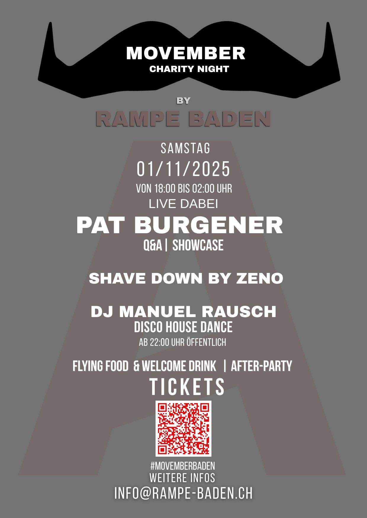 Movember Charity Night in der Rampe Baden 🗓 Samstag, 1. November 2025 | ⏰ Ab 18:00 Uhr